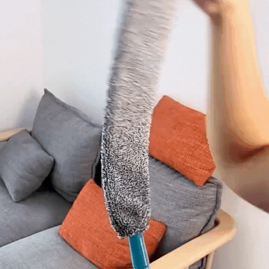 The dust cleaner has an ultra-slim design and a bendable head that makes it easy to clean tight spaces, like under furniture or between appliances. Its microfiber cloth traps dust and dirt effectively.